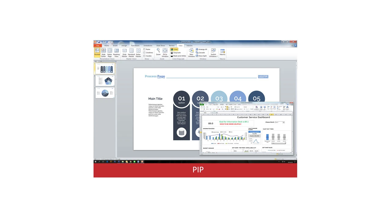 เพลิดเพลินไปกับอิสระในการรับชมสิ่งที่คุณต้องการ ในเวลาใดก็ได้ที่คุณต้องการด้วยโหมดการซ้อนหลายๆ หน้าจอพร้อมกันหรือ Picture-in-Picture (PIP) ผสมผสานกับคอนเทนต์จากทีวี เครื่องพีซีและอุปกรณ์อื่น ๆ เพื่อการทำงานและการใช้ชีวิตที่หลากหลายมากขึ้น การทำงานเอกสารไปด้วยดูทีวีไปด้วยในหน้าจอเดียวไม่ได้เป็นเรื่องเพ้อฝันอีกต่อไป